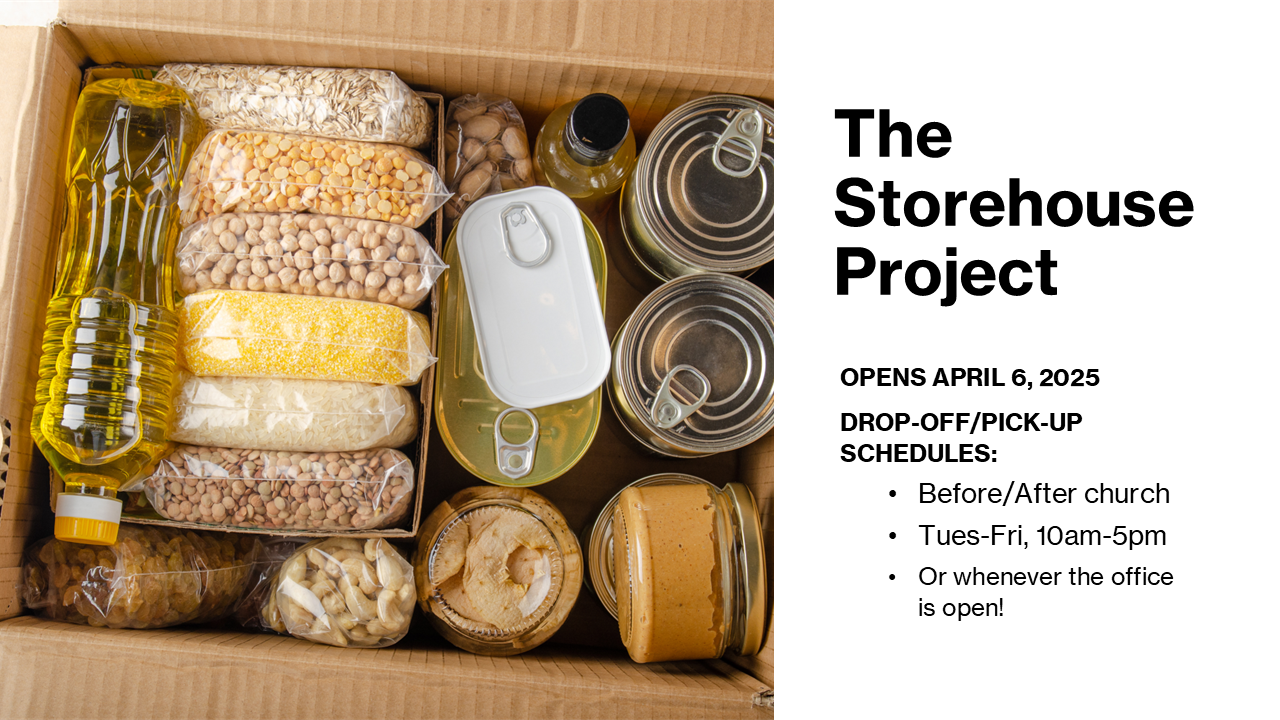 Don’t forget to check out our storehouse after the celebration on Sundays in the community room!